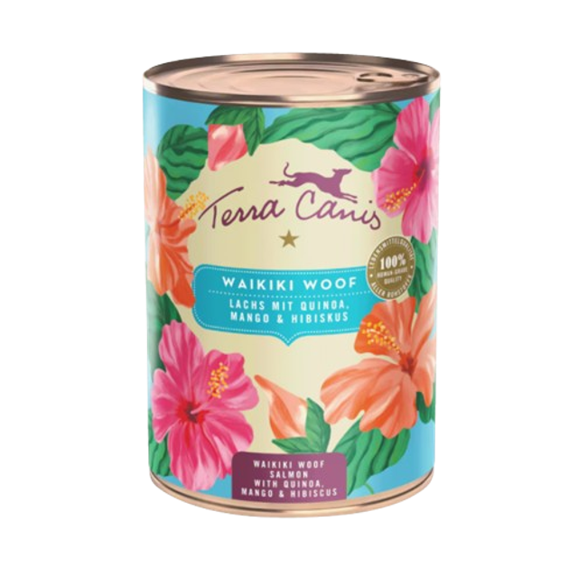 Waikiki Woof: Saumon accompagné de quinoa, mangue et hibiscus.